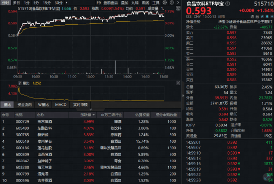 2026年首个买卖日(1月5日),吃喝板块送来开门红!反映吃喝板块全体走势的食物饮料ETF华宝(515710)开盘后震动拉升,盘中场内价钱最高涨幅达到1。71%,截至收盘,涨1。54%。成份股方面,白酒龙头集体猛攻。截至收盘,贵州茅台大涨3。54%,山西汾酒涨3。08%,五粮液、泸州老窖、洋河股份等涨超1%。部门公共品亦涨幅居前,燕京啤酒、东鹏饮料双双收涨超4%。