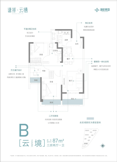 谦祥雲栖深切挖掘全家庭栖身需求,打制了 72㎡两居、92㎡小三居、118㎡大三居、132㎡四居等多个适配分歧家庭布局的户型,每个户型都兼顾适用性、平安性和舒服性,让每个家庭都能具有专属空间。