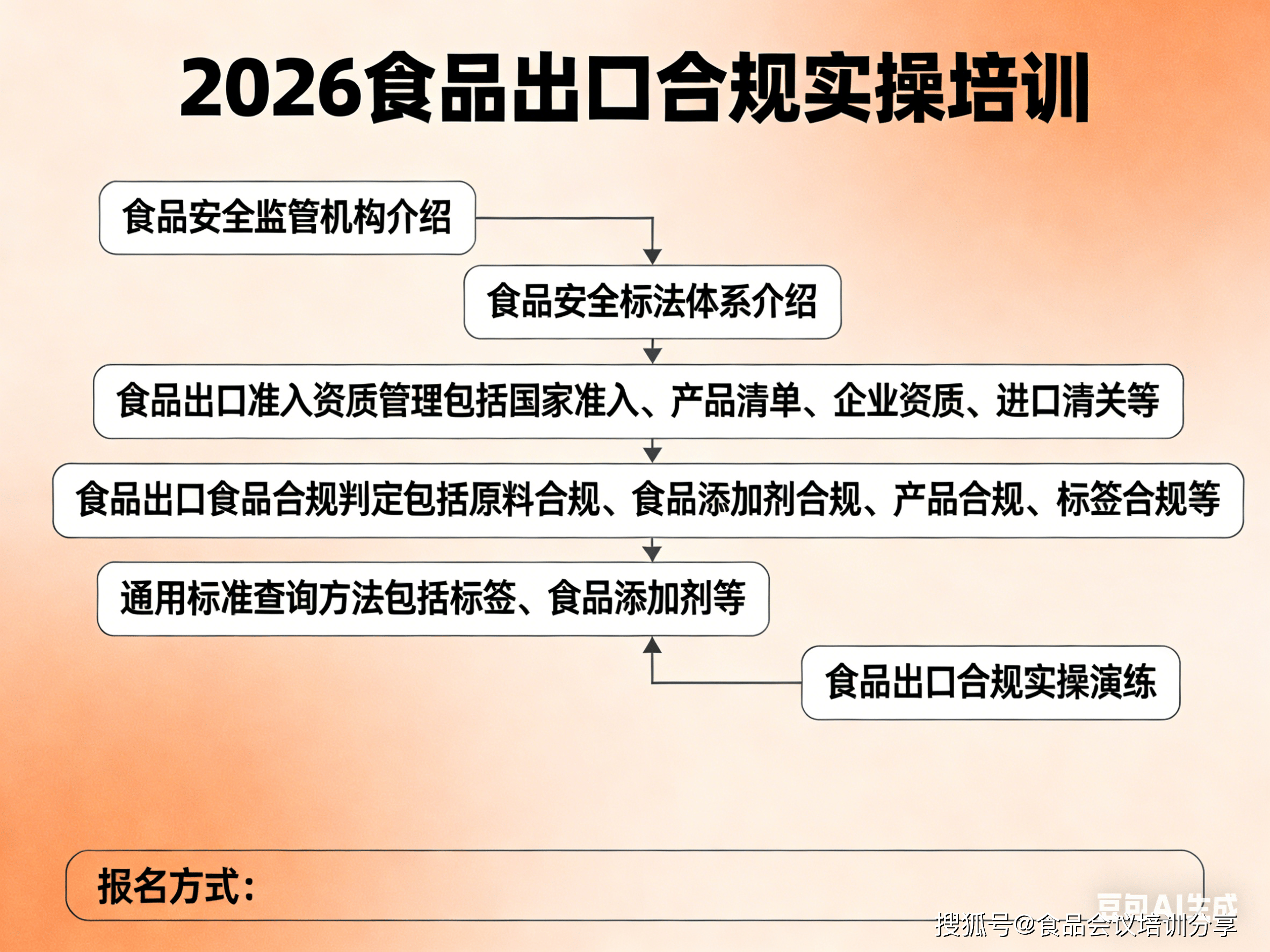 近年来,已成为世界次要食物出口国之一。跟着全球化的加快和国际商业的深化,食物出口已成为我国对外商业的主要构成部门。因而,提拔食物出口企业的合规认识和能力,对于保障我国食物出口的不变增加具有主要意义。为帮帮食物出口企业能更好领会各出口国的律例政策和监管要求环境,熟知食物出口流程,尽可能规避商业过程中因为对出口国相关律例政策不领会而发生的风险。为此,食物伙伴网将举办“食物出口合规实操培训暨食物出口东南亚合规实操专项培训”,为食物出口人供给一个进修和交换的平台!